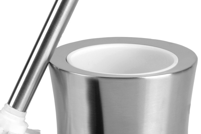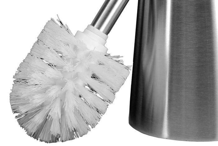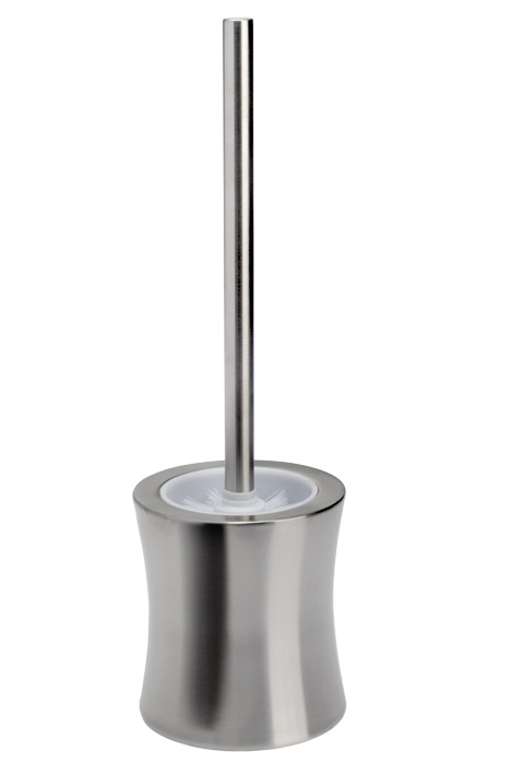 Szczotka wc metalowa z plastikową, wymienną końcówką. Obudowa w kształcie klepsydry wykonana została ze stali nierdzewnej wykończonej w odcieniu satynowym. Szczotka sprawdzi się w łazienkach domowych, hotelowych oraz toaletach publicznych.
