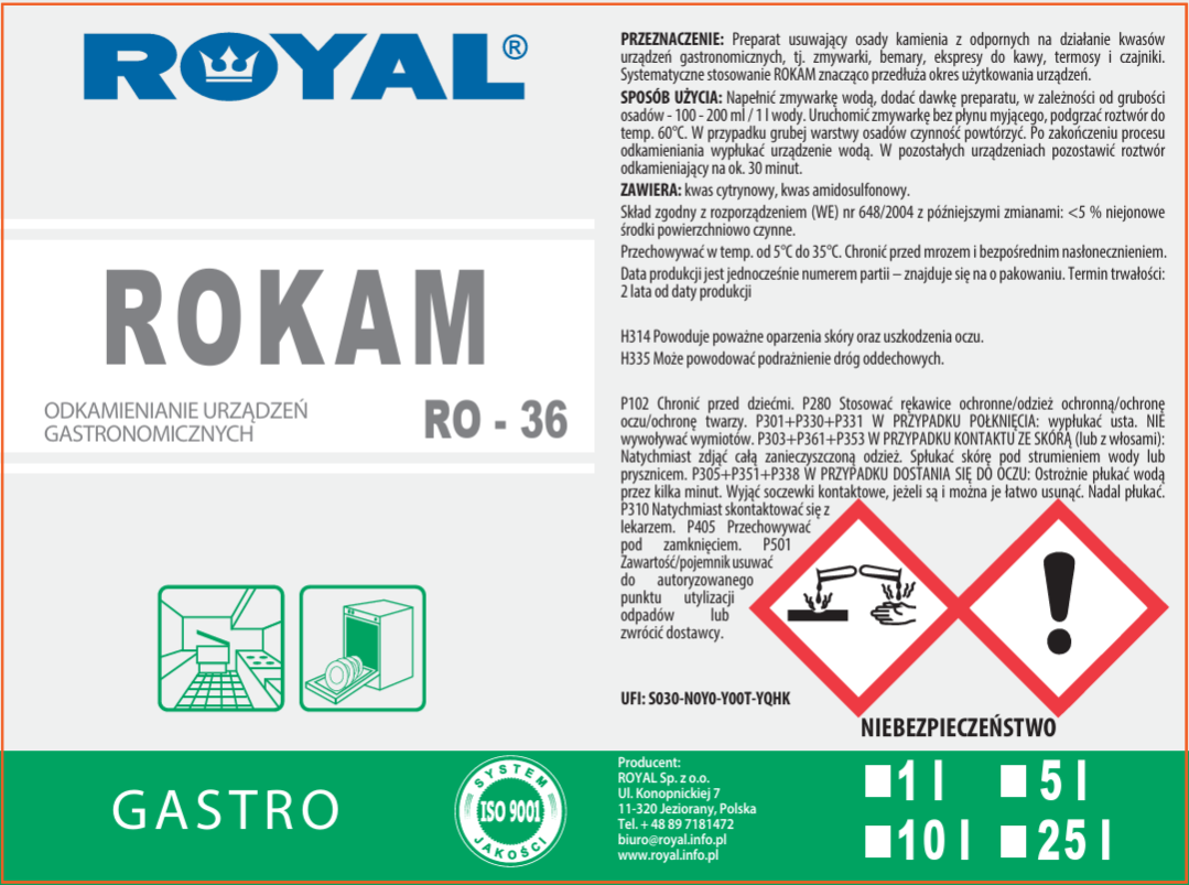 Płyn do usuwania kamienia w zmywarkach i urządzeniach gastronomicznych Rokam