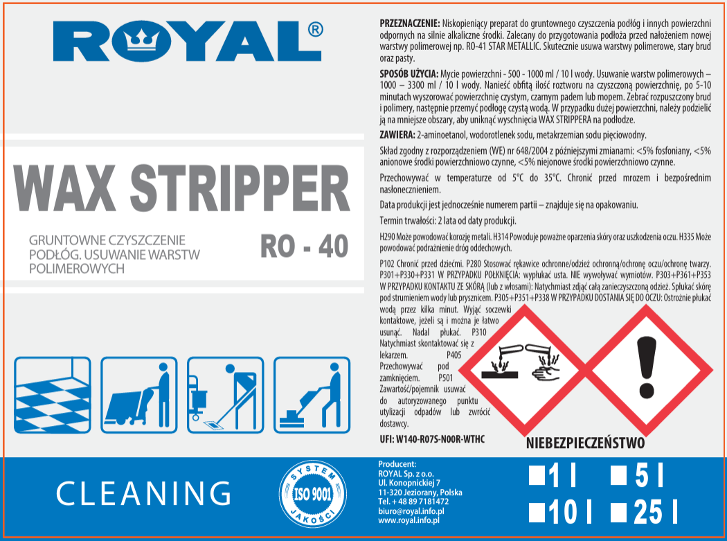 - zastosowanie: usuwanie powłok polimerowych, akryli, powłok woskowych, emulsji nabłyszczających