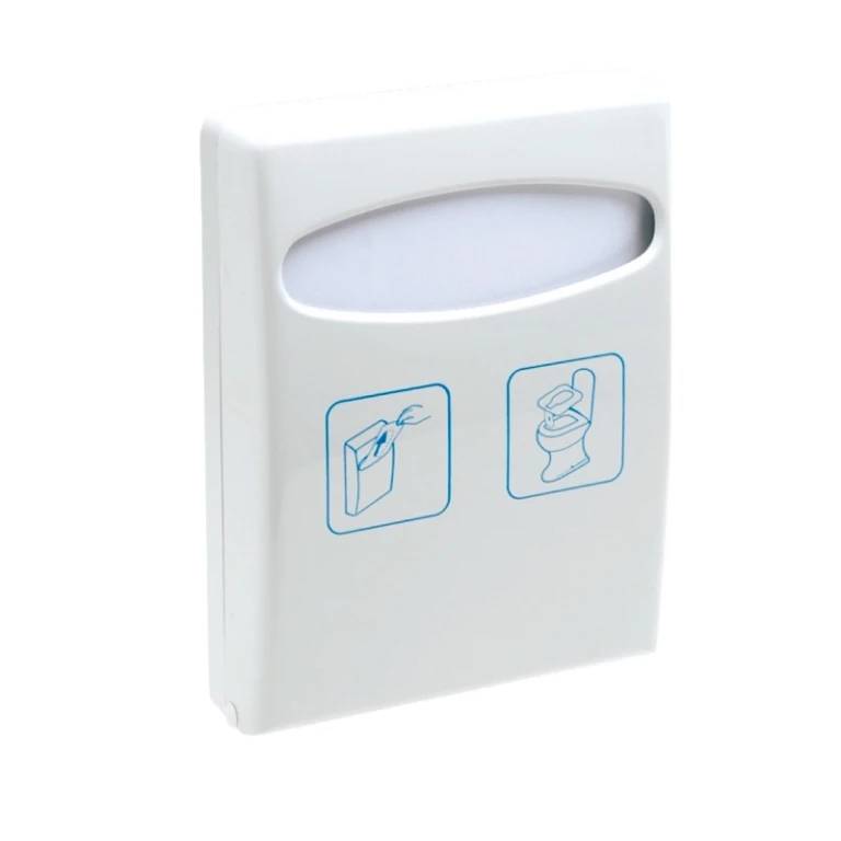 Pojemnik na jednorazowe nakładki higieniczne na deskę sedesową. Wykonany z tworzywa sztucznego ABS, otwierany i zamykany kluczykiem o niewielkich rozmiarach, dzięki czemu zmieści się w każdej kabinie. Stanowi doskonałe uzupełnienie wyposażenia łazienki oraz pozwala na higieniczne korzystanie z toalety. Pojemność: 200 szt. nakładek.
