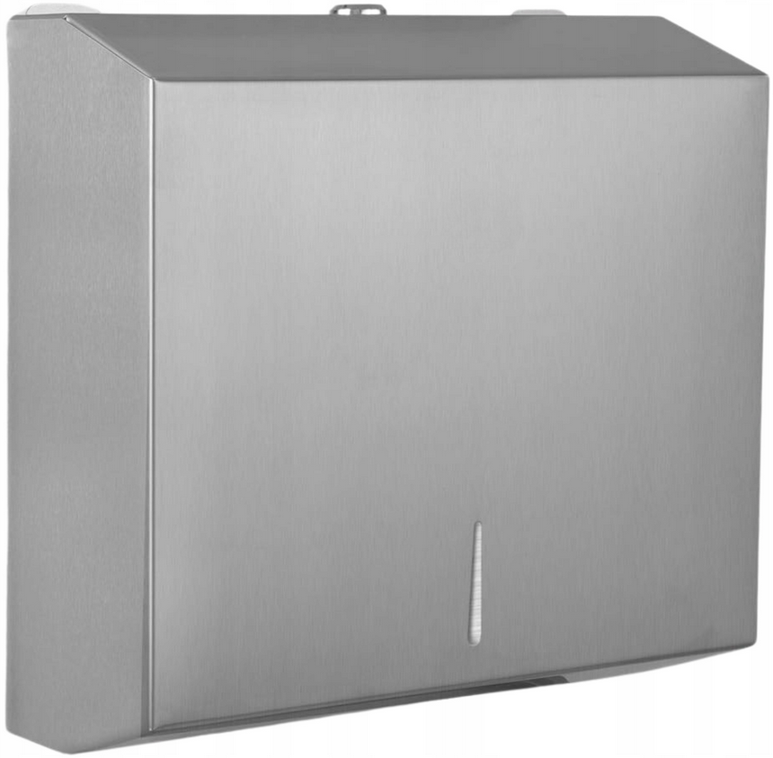 Ten model dozownika to połączenie wysokiej jakości wykonania z niską ceną. Obudowa ze stali nierdzewnej odpornej na zarysowania. Łatwy w utrzymaniu czystości, dzięki matowemu wykończeniu. Przeznaczony na ręczniki w składce ZZ o standardowych wymiarach 23x25 cm jak również mniejsze ręczniki o wymiarach 21x20 cm.